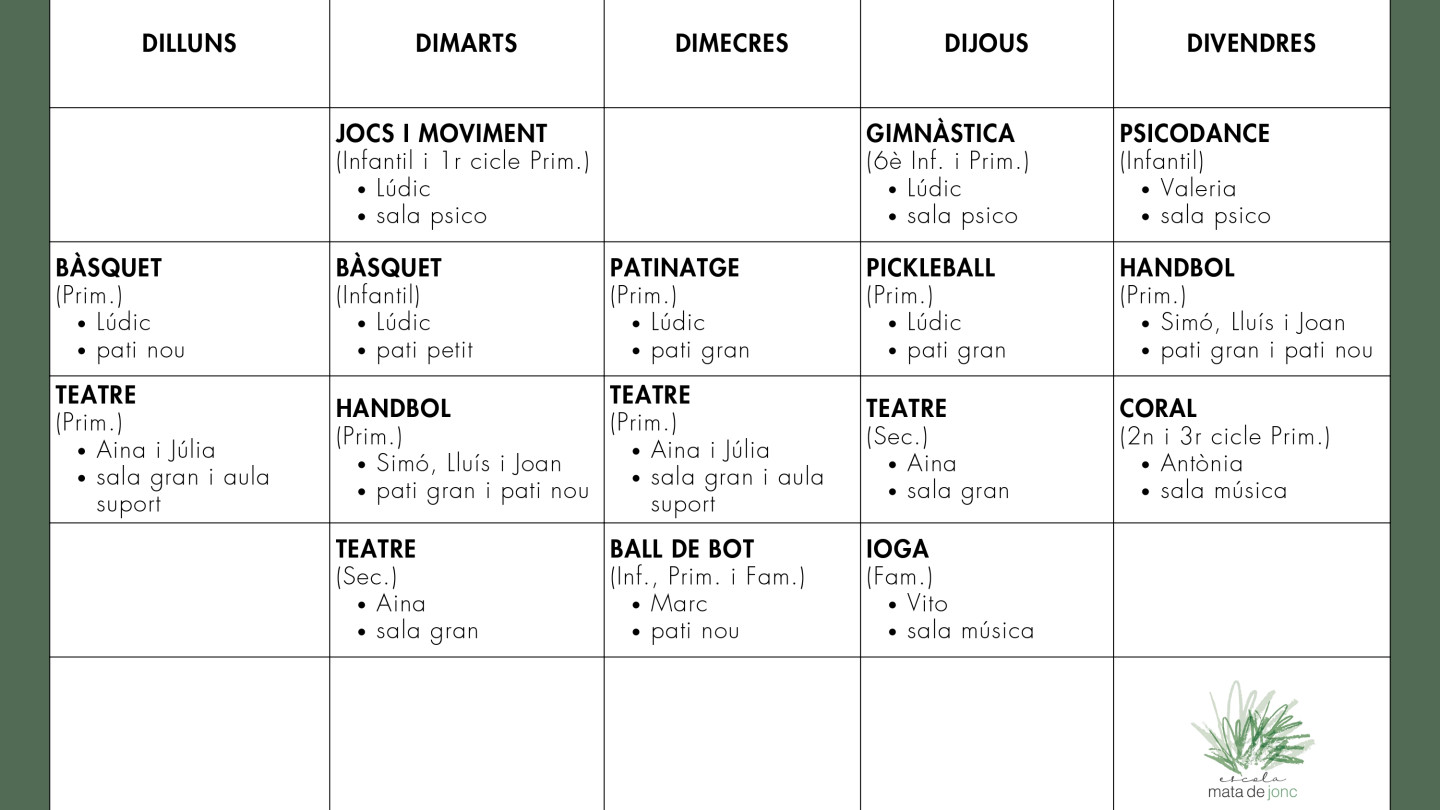 La nostra finalitat és complementar l’educació que ofereix l’escola amb activitats extraescolars que ajudin els infants i joves a adaptar-se als nous entorns i tendències futures, a través de mètodes innovadors. Entenem l’educació no formal com un espai d’educació en valors, de creixement personal, creatiu, d’aprenentatge i sobretot de diversió.